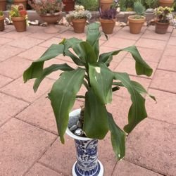 Tall homegrown green corn plant beautiful Asia white blue ceramic pot with stones $30Rosemead, CA