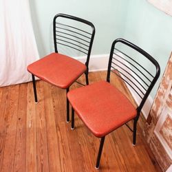 2 Vintage Cosco Folding Chairs MCM Gate Leg Chair S Red/Blk Metal Chairs $255Costa Mesa, CA
