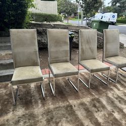 Four Milo Baughman Dining Chairs Covered In Ivory Sunbrella Velvet$450Los Angeles, CA