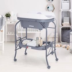 2 in 1 Baby Changing Table with Bath Tub Unit INFANS Folding Diaper Dresser Station with Wheels Waterproof Pad Storage Rack, Portable Nursery Organiz $99Burbank, CA