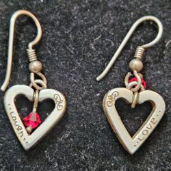 Brighton Retired Silver Heart Dangle Earrings - "Live, Laugh, Love & Dream" Pair$25Costa Mesa, CA