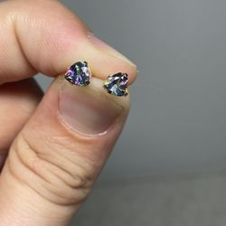 Solid 10K Yellow Gold Heart-Cut Mystic Topaz / Alexandrite Stud Earrings $155Culver City, CA