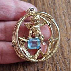 Vintage 1950s Cherub Angel March Blue Birthstone Gold Necklace Pendant Charm$25Norwalk, CA
