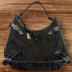 LRL Lauren Ralph Lauren Black Shoulder Bag Signature Logo Canvas Buckles Flawed$50Anaheim, CA