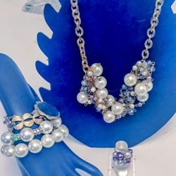 Cluster Pearl And Chain And Rhinestone Necklace Pearl Matching Bracelets$35Garden Grove, CA