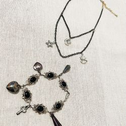 Rustic Witch Black Chain Necklace Choker, With Vintage Gothic Rustic Bracelet With Charms $20Torrance, CA