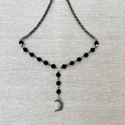 2 Necklace Total. Witch necklace. Moon steampunk gothic Halloween short necklace. Rosary style vintage 90’s. Choker Black Layer $25Torrance, CA