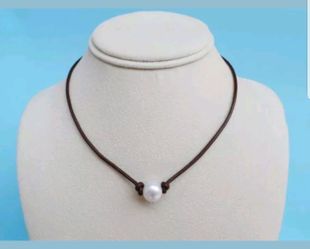 NEW!! Handmade Cultured Freshwater Single Pearl Choker Necklace on Genuine Black or Brown Leather Cord SIZES 14"-18"$5Los Angeles, CA