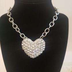 Rhinestone Heart Pendant Necklace Stainless Steel Signed Rock Girl Jewels (Marilou )$13City Of Industry, CA
