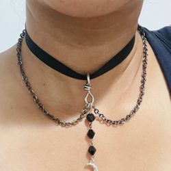Choker With Dangling Black Chain. Gothic Witch Or Anything Spooky Jewelry For Costume Halloween Black Goddess Women. Handmade $15Carson, CA
