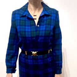 1980’s Vintage Pendleton Shirt Dress, 100% Wool, Blue Morgan Tartan plaid, -Size Medium 6-7$50Long Beach, CA