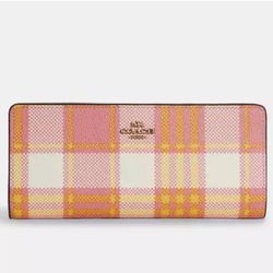 COACH 🩷PINK🩷 TAFFY MULTI GARDEN PLAID PRINT SLIM WALLET 🌟LIKE NEW🌟$75Santa Ana, CA