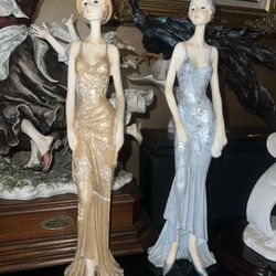 Set Of Two Art Deco Midnight Shimmer Lady Figurine Statues 16 Inch $42Whittier, CA