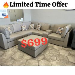 Beautiful 4-Piece Sectional Fur Corduroy Set W/Ottoman, USB Console, & Cup Holder Brand New $529Norwalk, CA