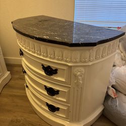 Gorgeous, white molding, three drawer console table with marble top$175San Pedro, CA