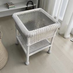 White rattan wicker side/ end / console stand table. Excellent condition . measurements: 18 x 18 x 23$30Long Beach, CA