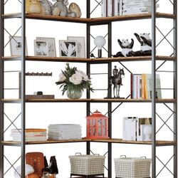 IRONCK 6-Shelf Corner Bookcase, Vintage Industrial Corner Bookshelf Etagere Bookcase, 6 Tier Corner Shelf Storage Rack with Metal Frame for Living Roo$200Gardena, CA
