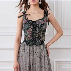 Women Vintage Floral Camisole Flower Embroidery Pattern Tight Vest Drawstring Tie-up Tank Top Suspender Corset$20Whittier, CA