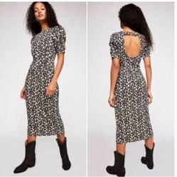 Free People Black Cream Floral Puff Sleeve Corset Open Back Midi Dress Size S$69Westchester, CA