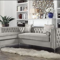 Modern Black / Gray Velvet Reversible Sectional Sofa Chaise with LED Light,USB Port,Nailhead Trim,Throw Pillows,Tufted Cushion // Limited Time Offer $329West Covina, CA