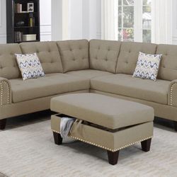 Beige Sectional Sofa With Storage Ottoman Brand New $480Anaheim, CA