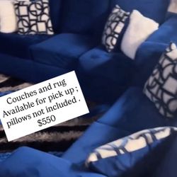 Blue Velvet Couches plus rug $600Long Beach, CA