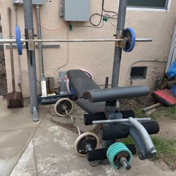 Squat Rack, Weight Bench, Olympic Weights with 7ft Bar and Curling Bar, Workout Gym Crossfit Equipment $1Los Angeles, CA