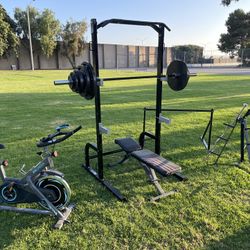 Home Gym Set Up : Squat Rack, Olympic Barbell, 235lb Olympic Weights, Spin Bike, Weight Tree, Ez Curl Bar, Bench, Wall Mounted Pull Up Bar & Dumbells$1,200Seal Beach, CA