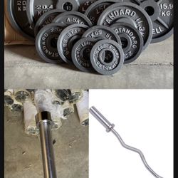 BRAND NEW 255lbs CAST IRON OLYMPIC WEIGHTS WITH BARBELL AND CURL BAR $500Rowland Heights, CA
