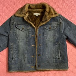 Vintage Marvin Richards Denim Jean Jacket Faux Fur Lined & Trim Coat SIZE S$27Garden Grove, CA
