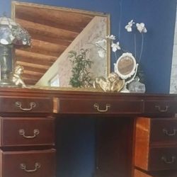 Mahogany Leather Top Antique Writing Vanity Desk, Table, Delivery$400Los Angeles, CA
