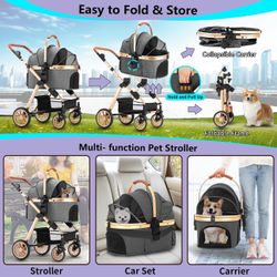 Ingborsa Pet Stroller 3 in 1 Folding Lightweight Dog Stroller with Detachable Carrier & Storage Basket, Premium 4 Wheels Travel Stroller for Puppies, $120City Of Industry, CA