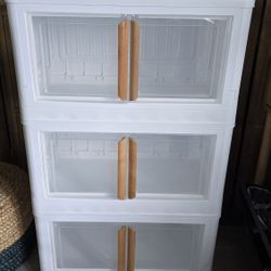 3 Tier Foldable Storage Cabinets, Stackable Storage Bins with Doors and Lids Closet Organizers and Storage with 4 Wheels Collapsible Plastic Storage$70Long Beach, CA