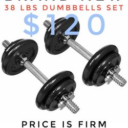 Adjustable standard plates 38 lb dumbbell dumb bell set barbell 30 25 customizable 15 20 lbs pound dumbells weights gym bench$120Rosemead, CA