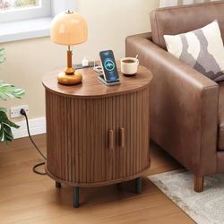 Walnut Charging Nightstand / Round End Table w/ Sliding Doors$69Los Angeles, CA