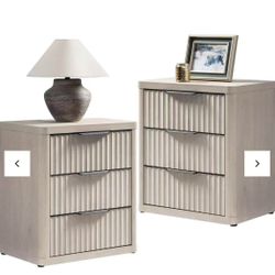 ND019A2CLTY1174 set of 2 Nightstands with 3 Drawers Storage Bedside Table Large Fluted Bed Side End Table Modern 25.6" Tall Wide Mid Century Night St$120La Mirada, CA