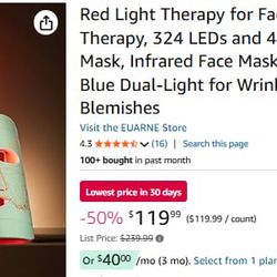Red Light Therapy for Face, LED Face Mask Light Therapy, 324 LEDs and 4 Modes Light Therapy Mask, Infrared Face Mask Light Therapy and Red & Blue Dual$120Santa Ana, CA