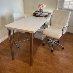 White Office Set With Chair, Desk, High Chair, And File Cabinet $300Los Angeles, CA
