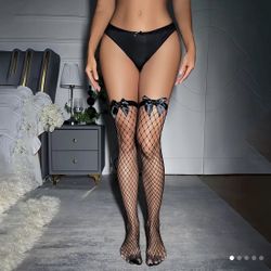 Sexy Leg Avenue Black Fishnet Thigh-High Stockings w Satin Ruffle and Black$5Los Angeles, CA
