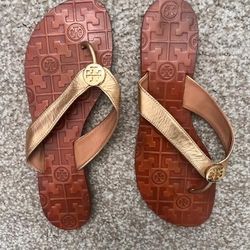 TORY BURCH Metallic Gold Leather Thong Sandals Size 9$75Irvine, CA