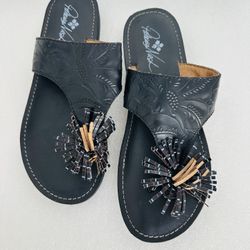 Patricia Nash Franca Tassel Leather Tooled Sandals Black Size 9$59Placentia, CA