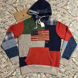 NEW Men XL - Polo Ralph Lauren Flag Patchwork Fleece Hoodie Sportsman Snow Beach $195Garden Grove, CA
