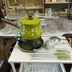Never Used Imperial Vintage Mid Century Modern Avocado Green with White Flower Enameled Fondue Pot$60Garden Grove, CA