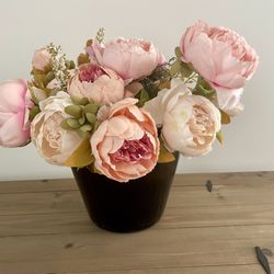 Pink Peonies Floral Arrangement Faux Flowers in Brown Glass Large Vase $35Los Angeles, CA