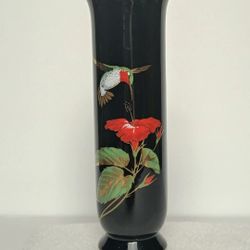 Otagiri Japan Black Bud Vase Gold Trim Hummingbird Hibiscus 6.5"$20Anaheim, CA