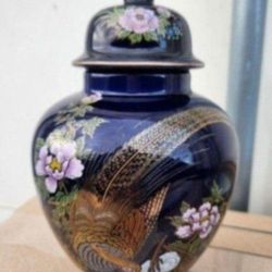 Vintage 8.5" Porcelain Cobalt Blue Ginger Jar Lid Birds Pheasants Flowers Floral Gold$18South Gate, CA