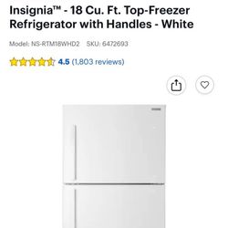 Insignia 18 Cu Ft Refrigerator & Freezer Like New$400Costa Mesa, CA