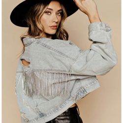 Denim Cowgirl Shacket With Embellished Fringes $19Alhambra, CA