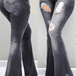 Bell Bottom Jeans Faded Denim High Waist Flare Pants Ripped Holes Destroyed Fringed Hem Boho Festival Hippie 2X Plus Size$25Los Angeles, CA