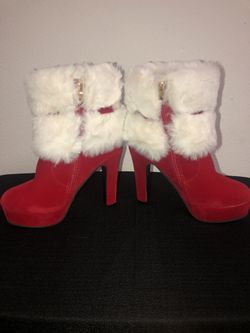 Holiday boots Indoor/outdoor booties slippers rubber outsole warm & comfy Red white ankle height size 6 7 8$7El Monte, CA